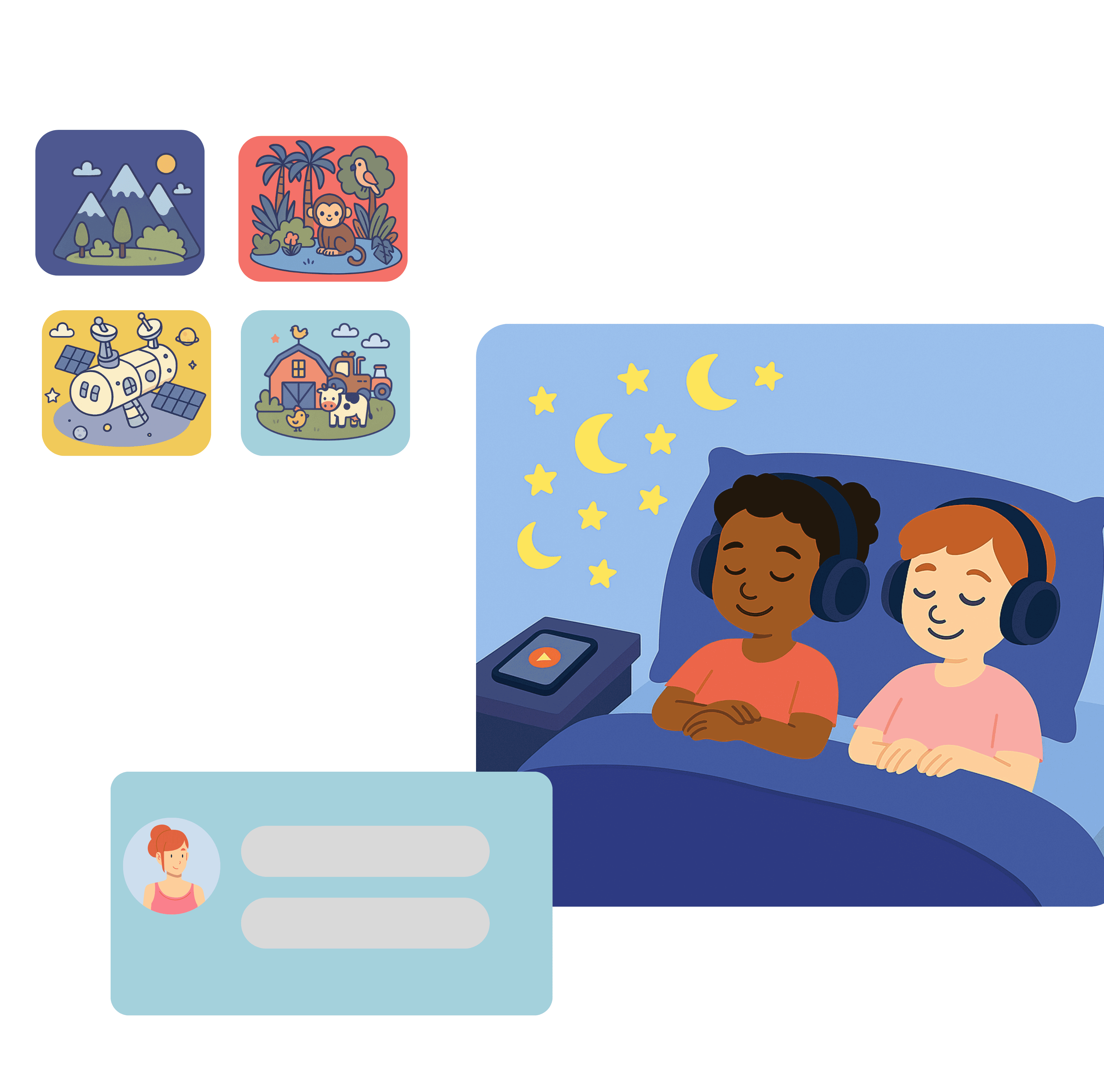 Ob Abenteuer, Einschlafgeschichte oder Fantasiereise – jedes Kind erlebt seine eigene Geschichte, passend zu seinen Interessen.
