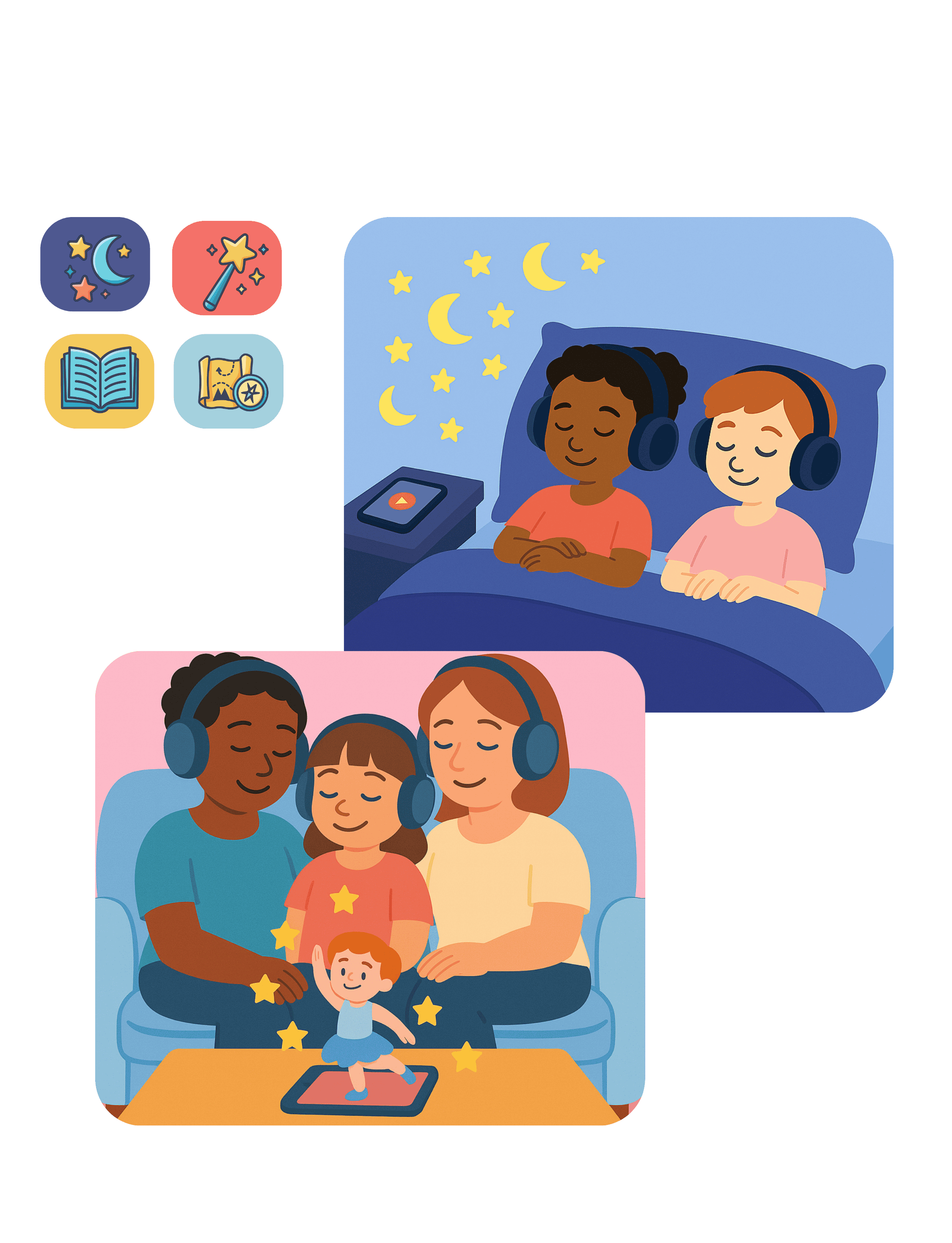 Mit AnyTales gestaltest du Geschichten so individuell wie dein Kind. Erstelle verschiedene Kinderprofile, wähle Themen, Stimmen – und entdecke Funktionen, die Familienalltag und Fantasie vereinen.
